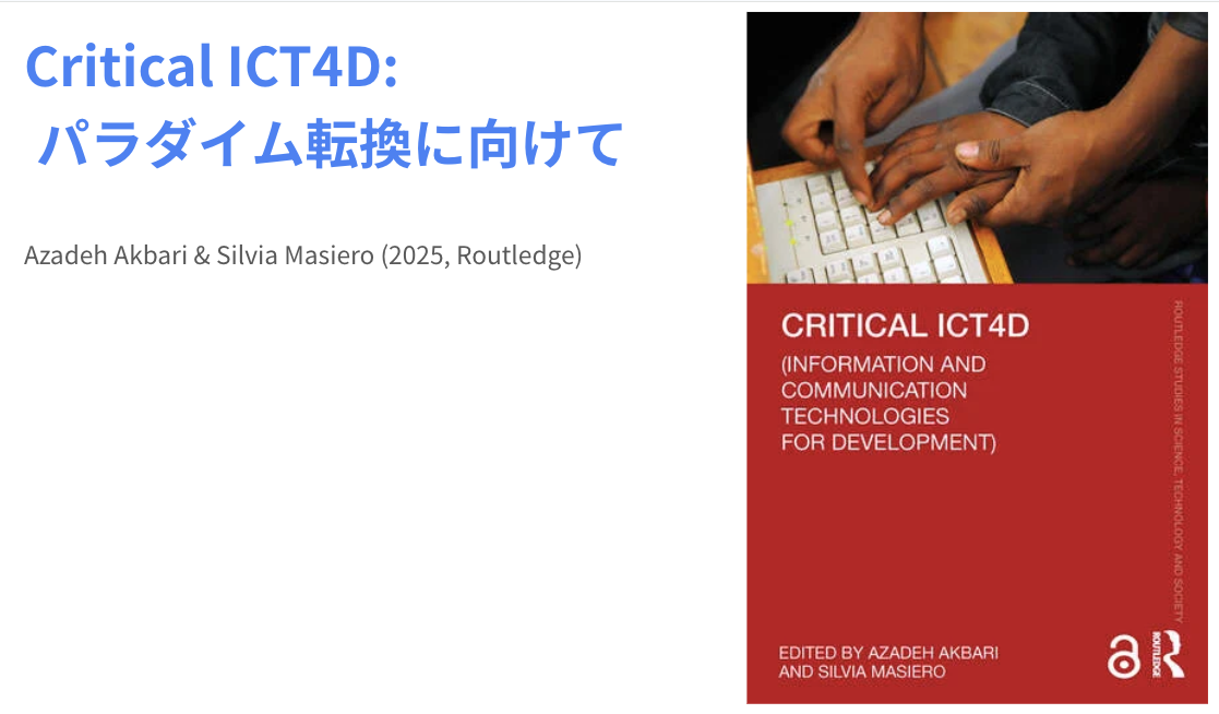 そんなオンラインコミュニティで現在実施している「ICT4D関連図書の輪読」企画がなかなか学び深く楽しく、ここでご報告させていただきます。